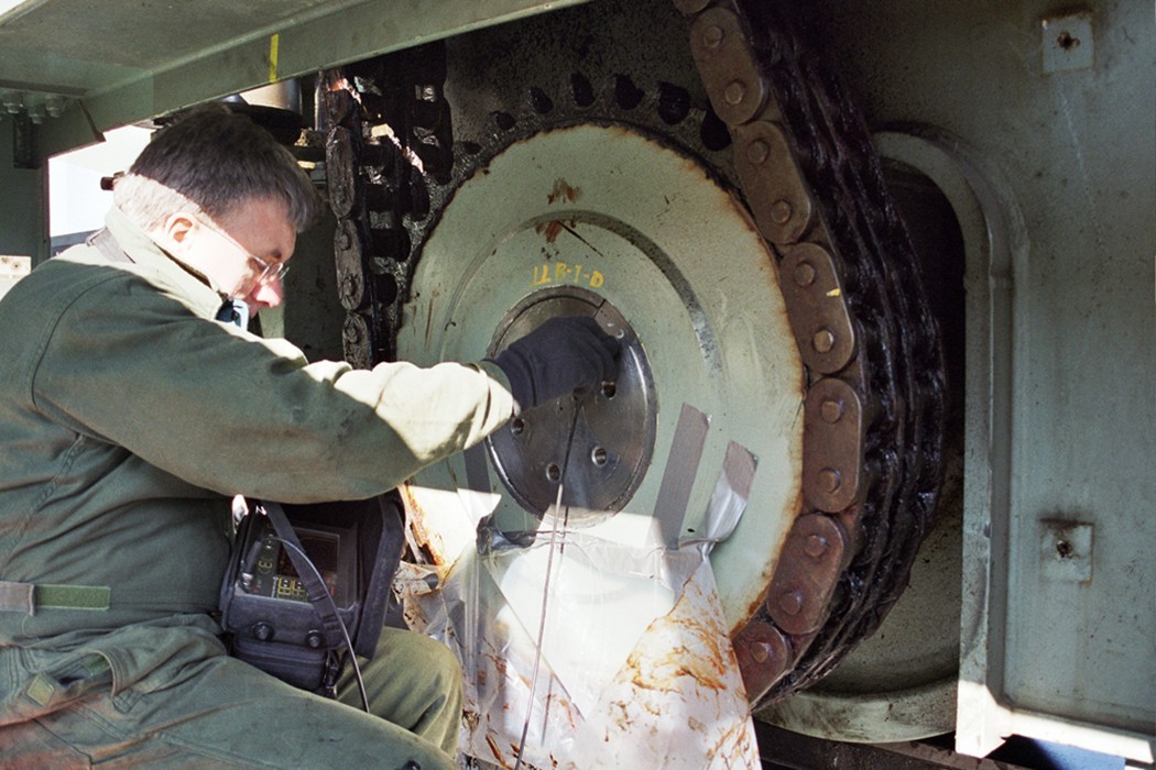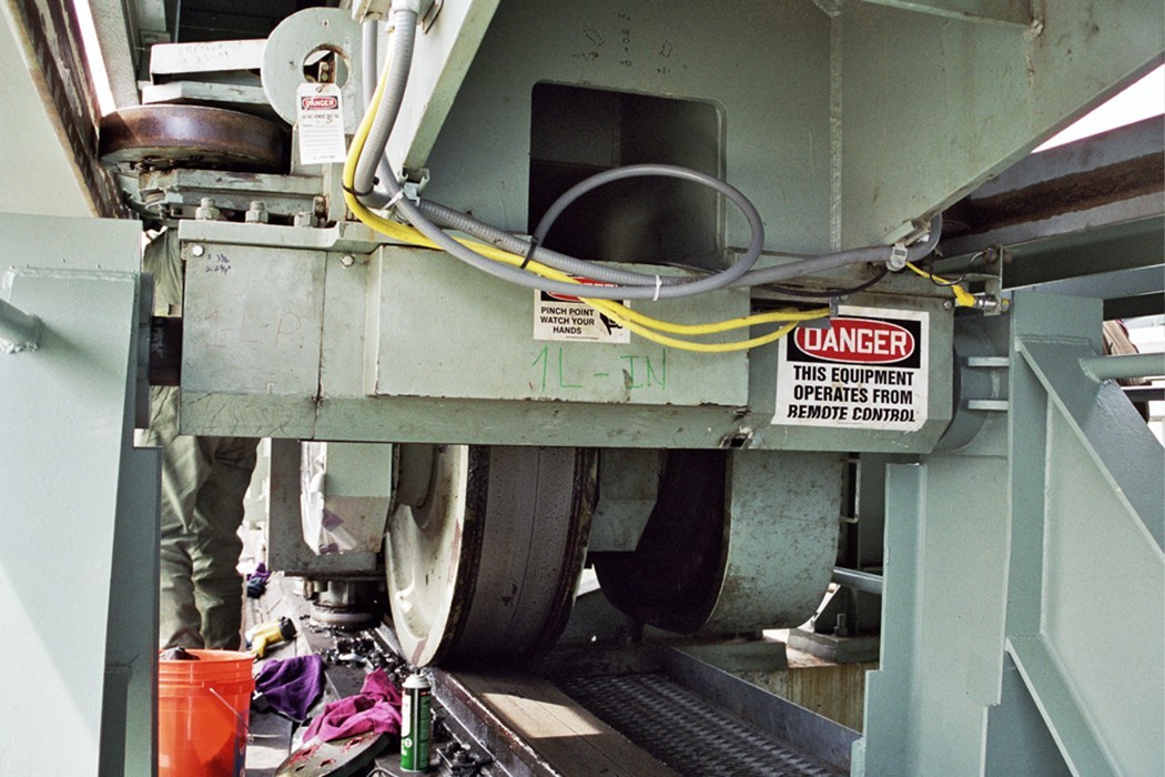 WJE provided ultrasonic testing to determine the integrity of drive and idler axles in the bogies that facilitate operation of the retractable roof. The travel path was studied to determine if geometrical interferences were contributing to the excessive noise during operation. WJE ascertained that the axles were sound. It was determined that the noises were inherent within the design of the assembly; therefore, the entire bogie assembly, including wheels and axles, required replacement to correct the condition.
