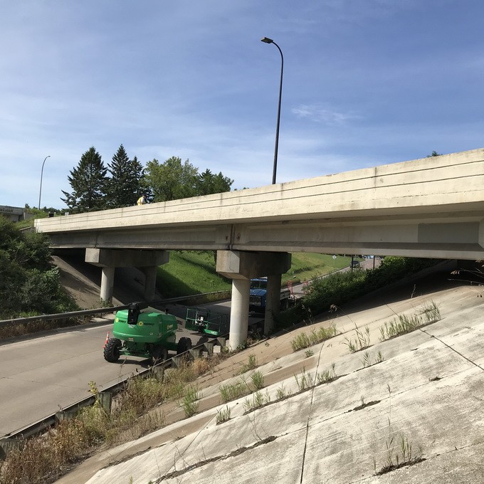 In 2019, the client retained WJE to perform a targeted condition assessment of the bridge substructure (abutments and piers) to evaluate distress identified by the City during routine inspections. Following review of WJE’s report, in 2020 the City requested WJE perform a condition assessment and service life evaluation of the bridge deck and superstructure. The intent of these additional services was to consolidate findings from the substructure, superstructure, and deck assessment work to develop maintenance and rehabilitation strategies and estimated costs.