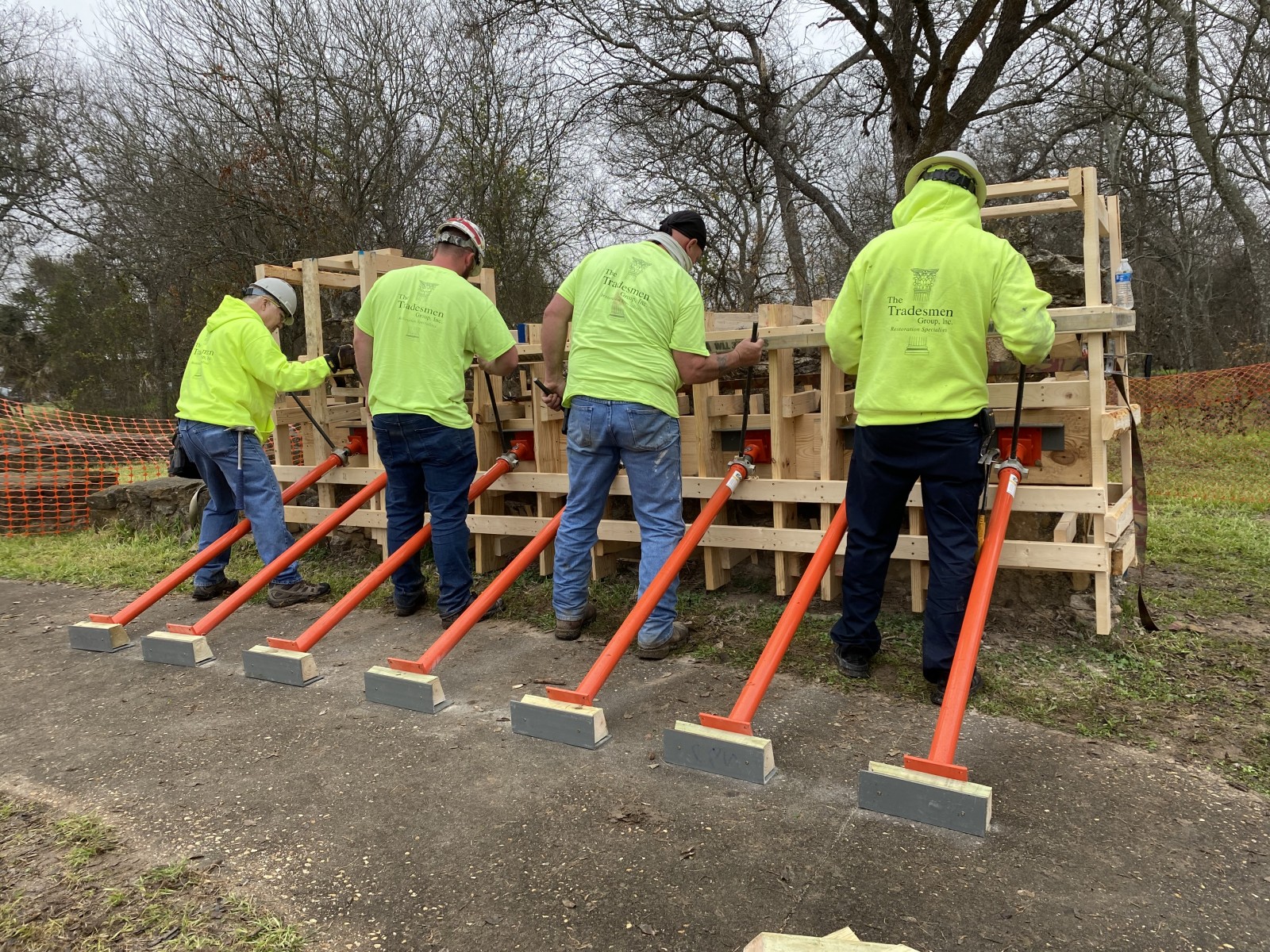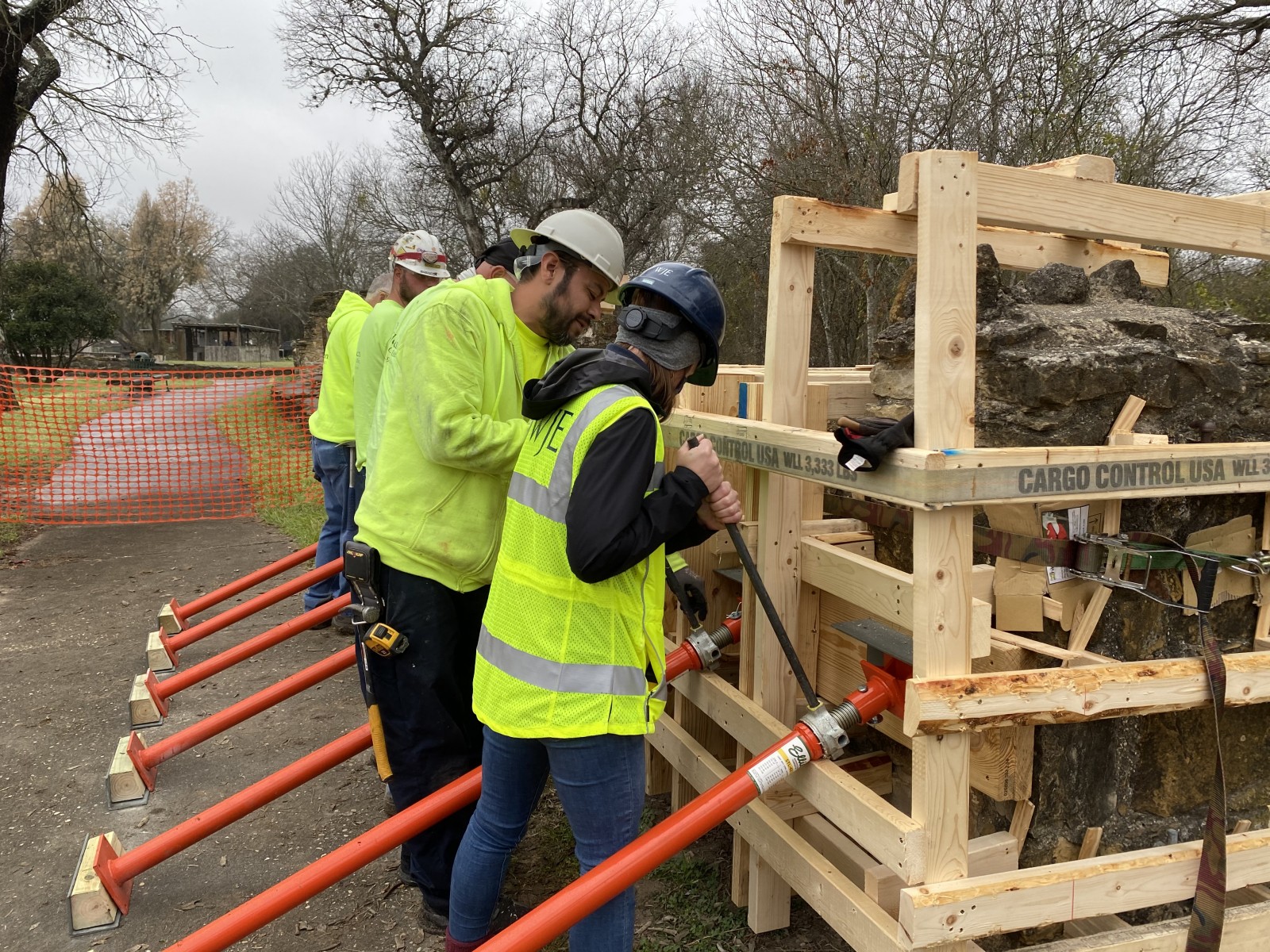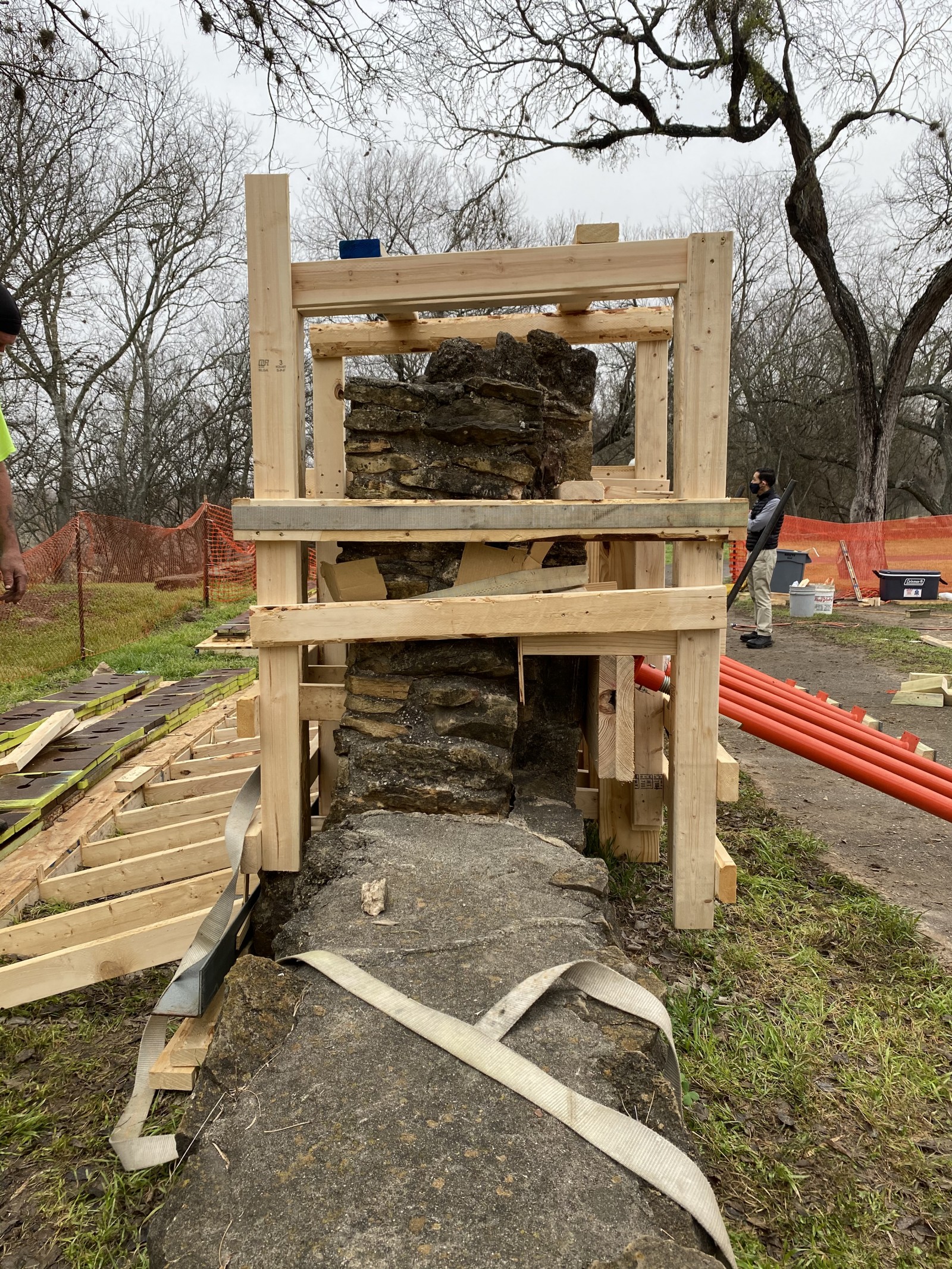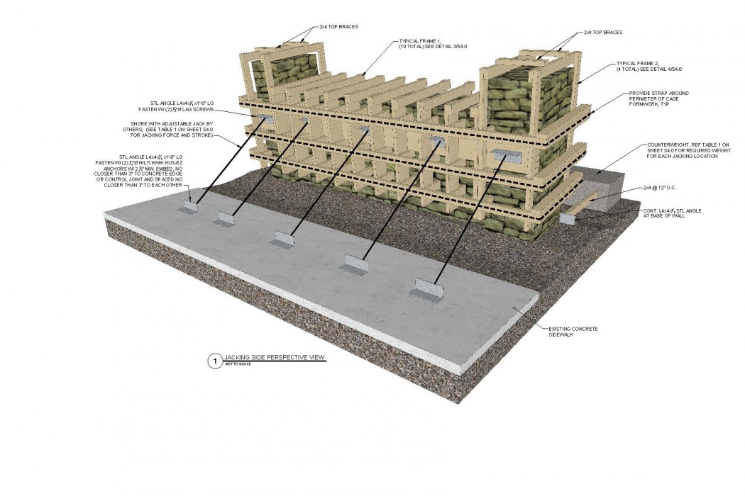 The National Park Service (NPS) required an intervention that would return the walls to plumb with minimal disturbance of the colonial foundation located below grade. The repair contractor desired to rotate the wall sections without disassembly of the stones.