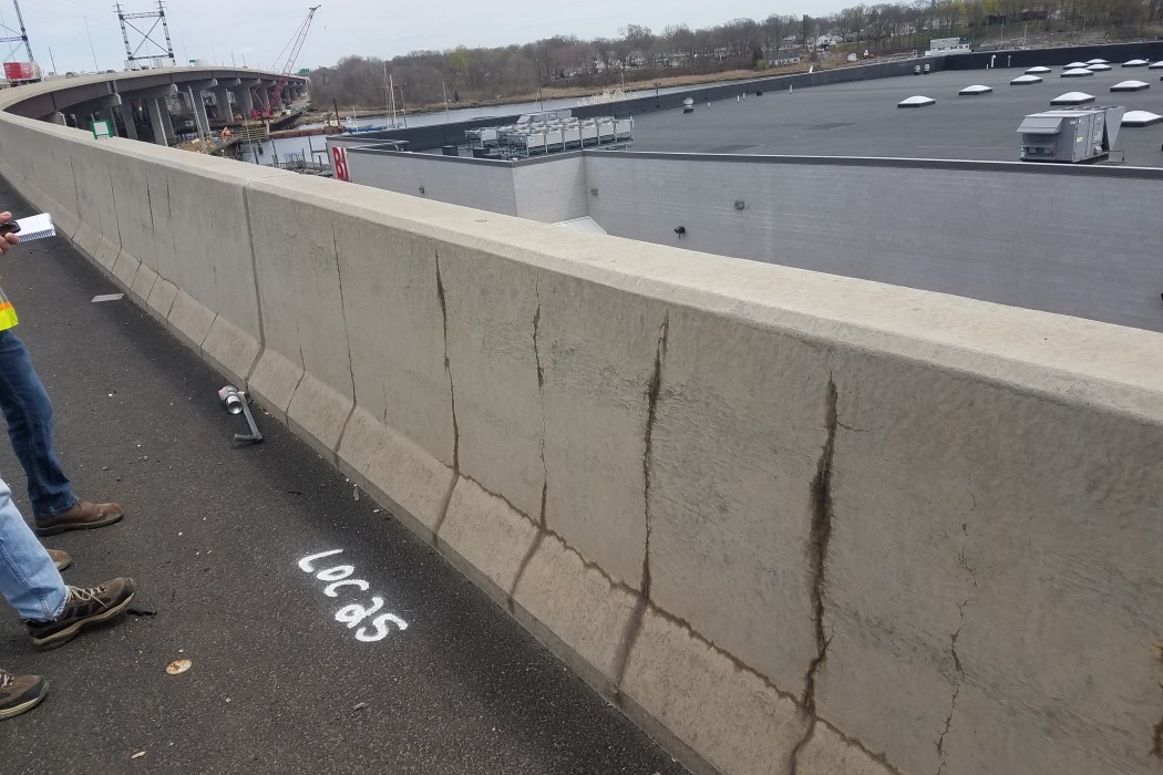 Shortly after construction, cracking and staining of the slip-formed concrete barrier walls was identified by the Connecticut Department of Transportation (CTDOT). They requested that the contractor perform an investigation to determine the cause of the cracking and prove a material defect did not exist.