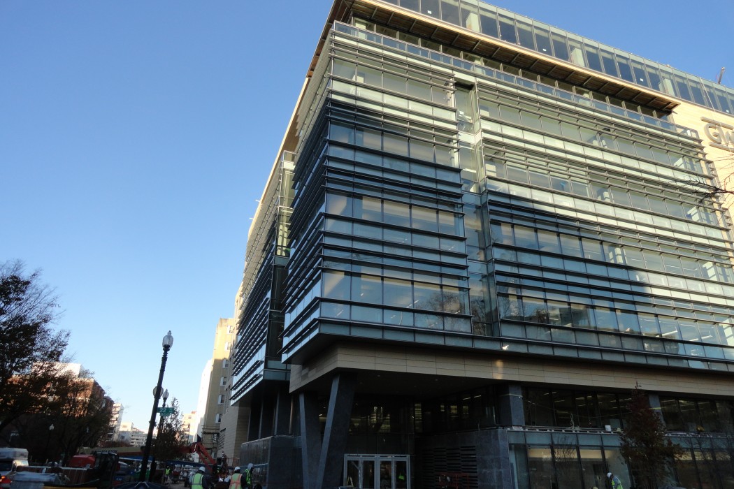 As with any high-performance building, particularly a building containing laboratories and sensitive equipment, achieving a weather-tight enclosure was critical. To mitigate the risk for uncontrolled rainwater penetration and moisture ingress, condensation, and moisture-laden air flow through the new above-grade building enclosure, WJE was retained by George Washington University to provide exterior enclosure consulting services during design and construction of the nearly 500,000-square-foot building.