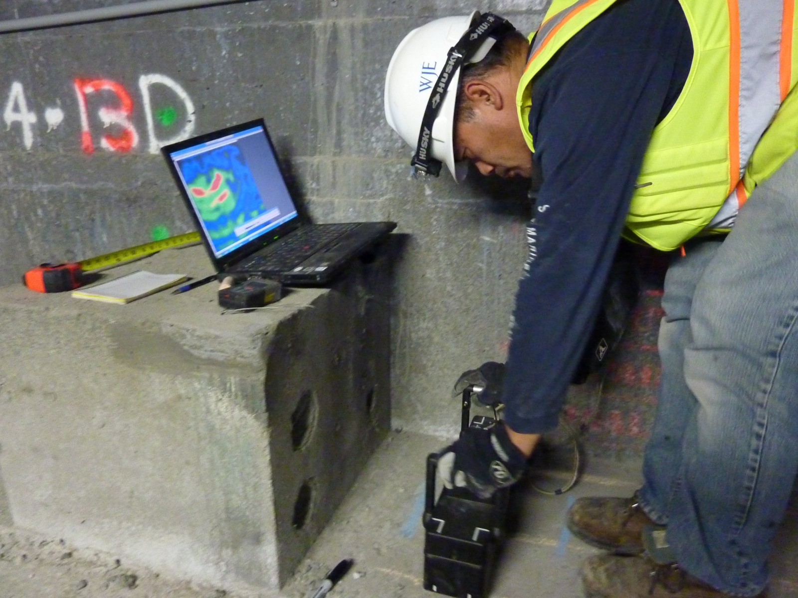 Once confident in the system's performance, WJE engineers used MIRA to scan a combined 319 feet of the bridges over a two-week period. Where voids were detected, discreet holes were drilled, allowing the engineers to perform borescope inspections of the offending tendon ducts. The engineers also excavated five inspection openings to verify MIRA results and collect grout samples for further laboratory studies. Despite the identification of eight grout voids, no tendon corrosion was observed.