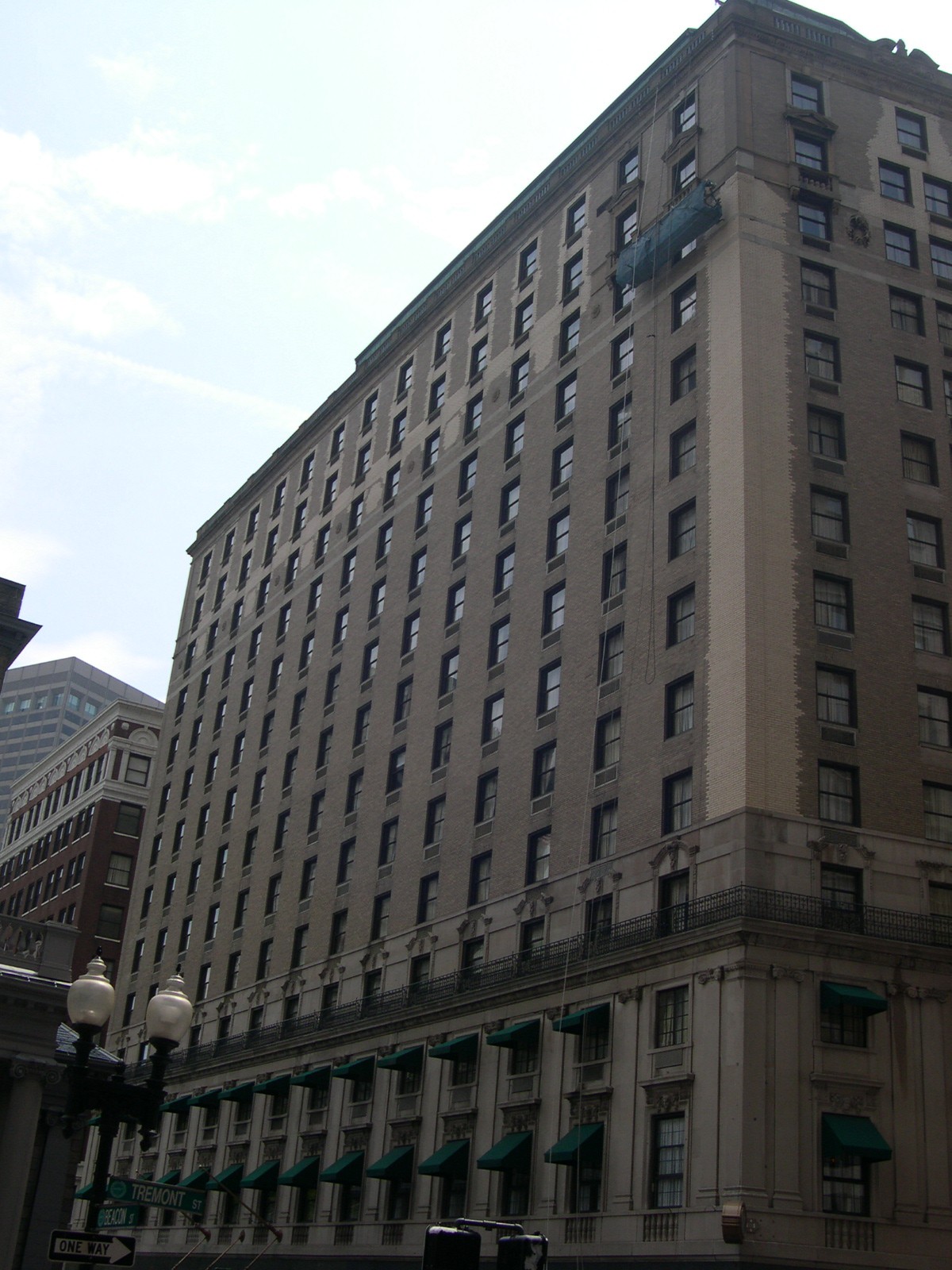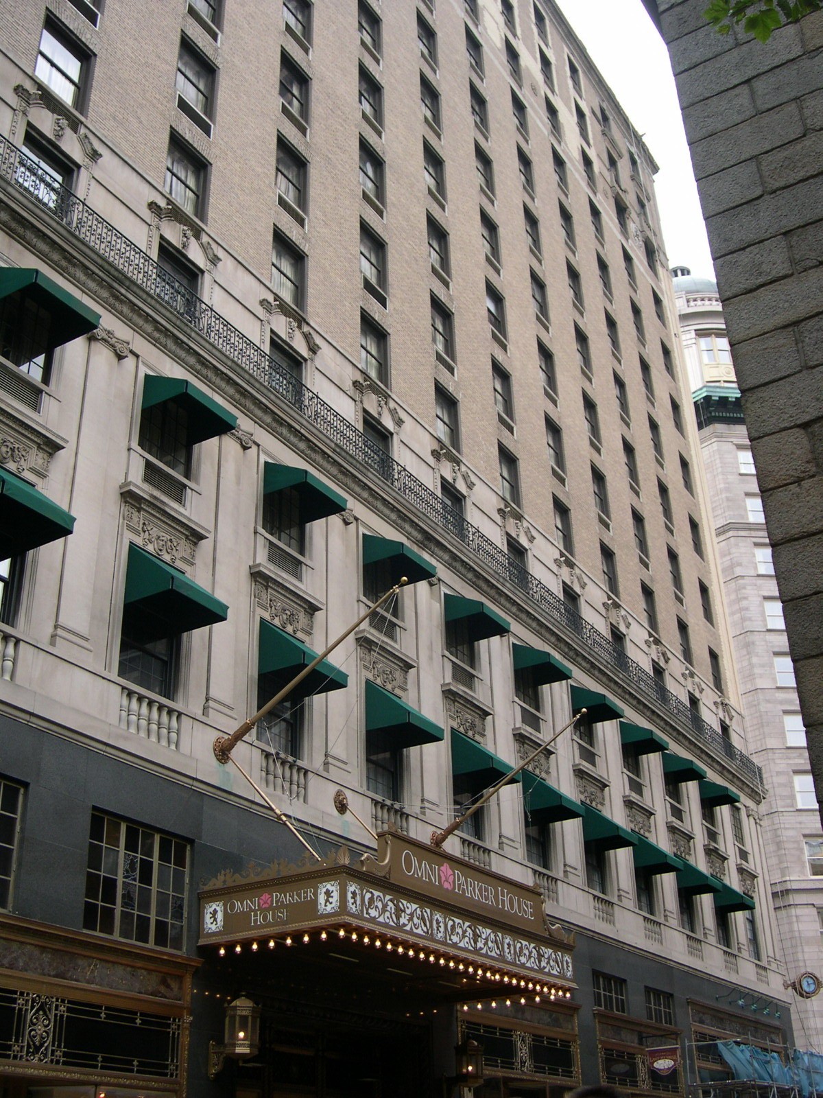 The Omni Parker House Hotel is a fourteen-story building, located on the corner of Tremont Street and School Street in downtown Boston, Massachusetts. The Omni Parker House Hotel consists of three building structures constructed in different stages. The Bosworth building is nine stories tall, made of red brick and sandstone, and resides on the southern portion of the L-shaped structure. The main building is the beige brick, cast stone, and polished granite, thirteen story building that resides on the northern portion of the L-shaped structure. The third building, also thirteen stories tall and made of beige brick and cast stone, was built to connect the other two buildings.