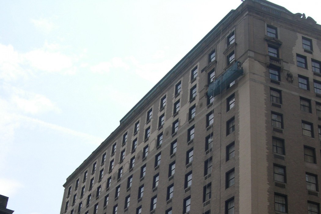 WJE identified deterioration throughout the building envelope by performing a binocular-aided visual survey as well as an up-close inspection and leak investigation. Based on findings developed through the hands-on survey, water testing, and laboratory analysis of existing building materials, WJE was able to define the extent of repairs necessary to repair the leaks while maintaining the building's historic facade. WJE prepared construction documents for repairs at the brick masonry, decorative cast stone window surrounds, copper roof, window units, structural steel, and a full replacement of the cast stone cornice and trials of brick staining to match the adjacent, historic brick facade. WJE also assisted with construction period services during the window replacement and facade repairs.