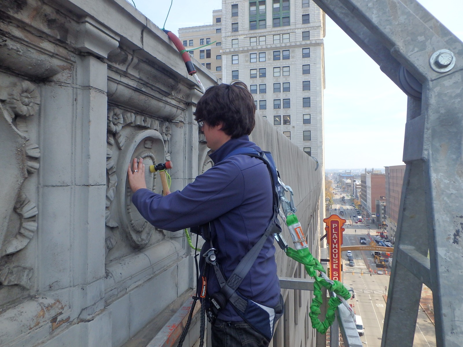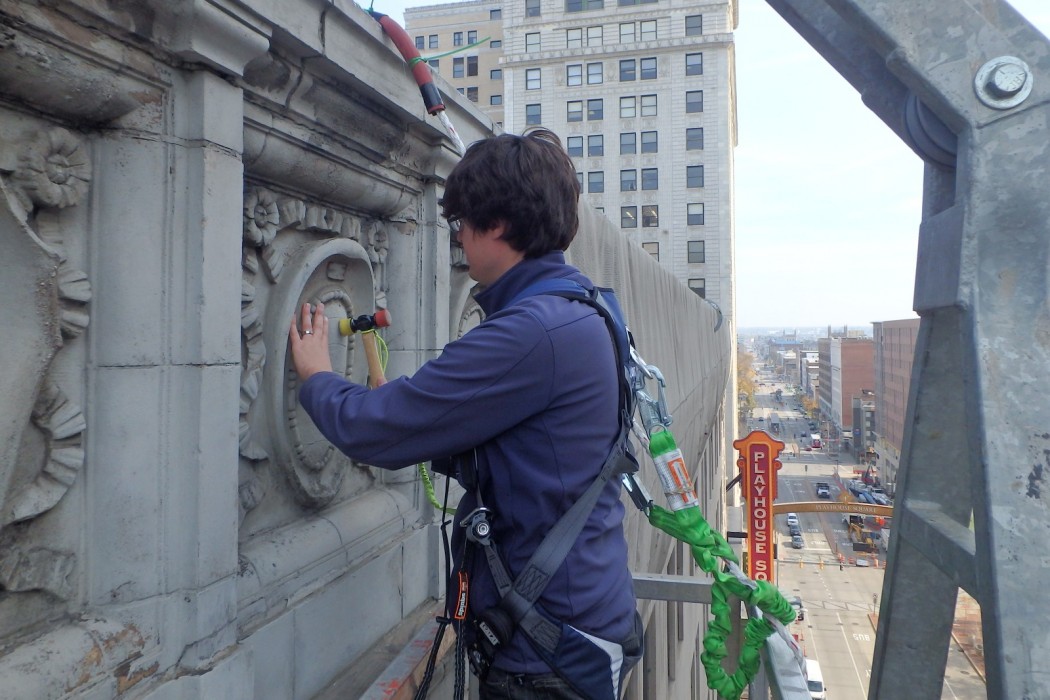 WJE worked with the building owner’s contractor who provided contractor assistance, including temporary stabilization of select conditions at the Bulkley and Hanna Building facades.