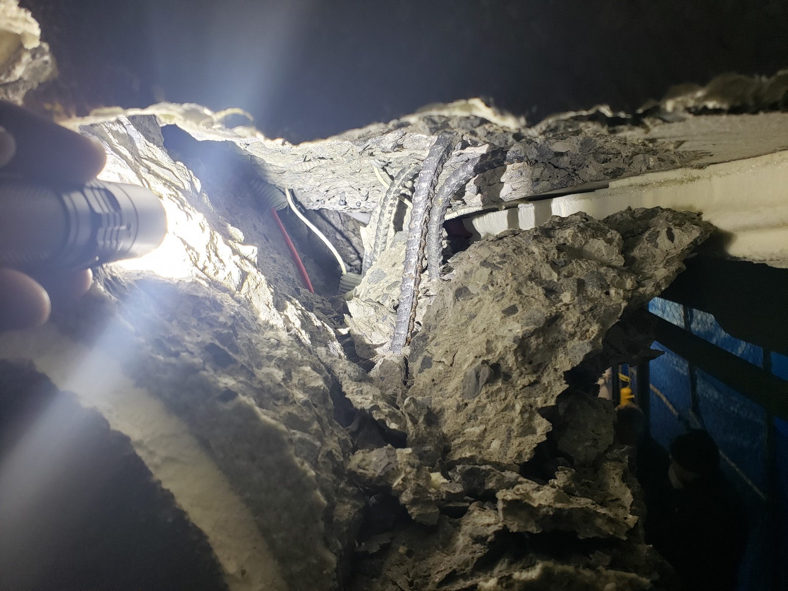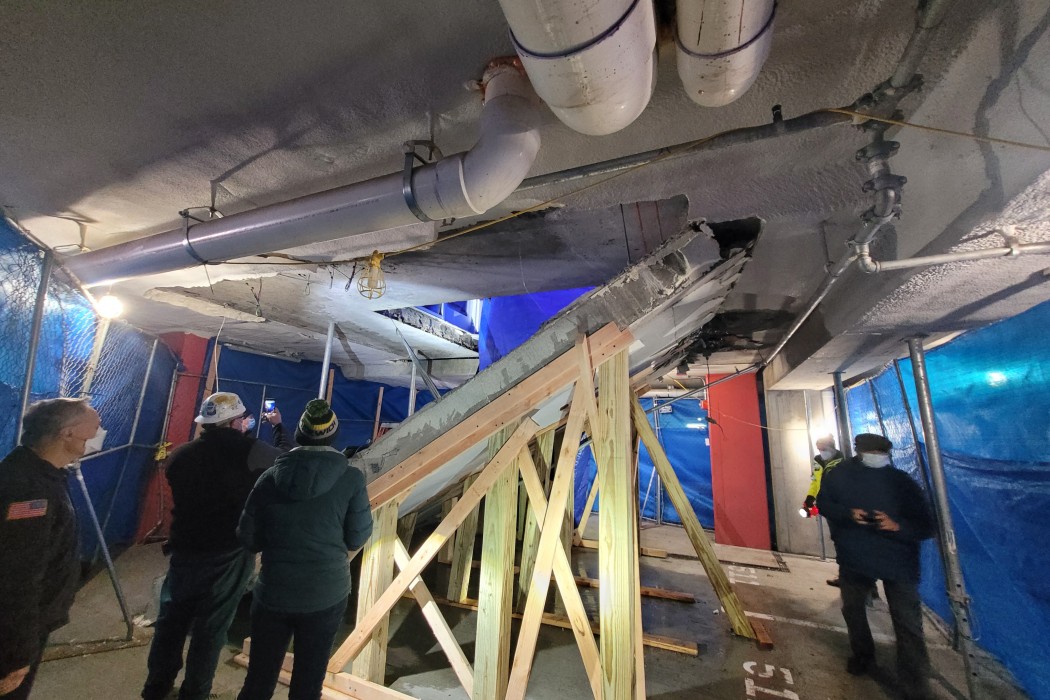 WJE was on site the day after the collapse to document the in-situ condition of the collapsed slab. We performed nondestructive testing and took material samples of the concrete, post-tensioning, and reinforcement. We then performed a detailed review of all design documents, shop drawings, and special inspections from the original construction. Following our review, we issued a report indicating the cause of the collapse. In addition, we performed a peer review of the repair design and performed construction period services for the repair on their behalf. Following the repair of the Allure, we visually inspected an additional four buildings developed by the same team utilizing a similar construction type and provided recommendations for repairs for further investigation by the developer.