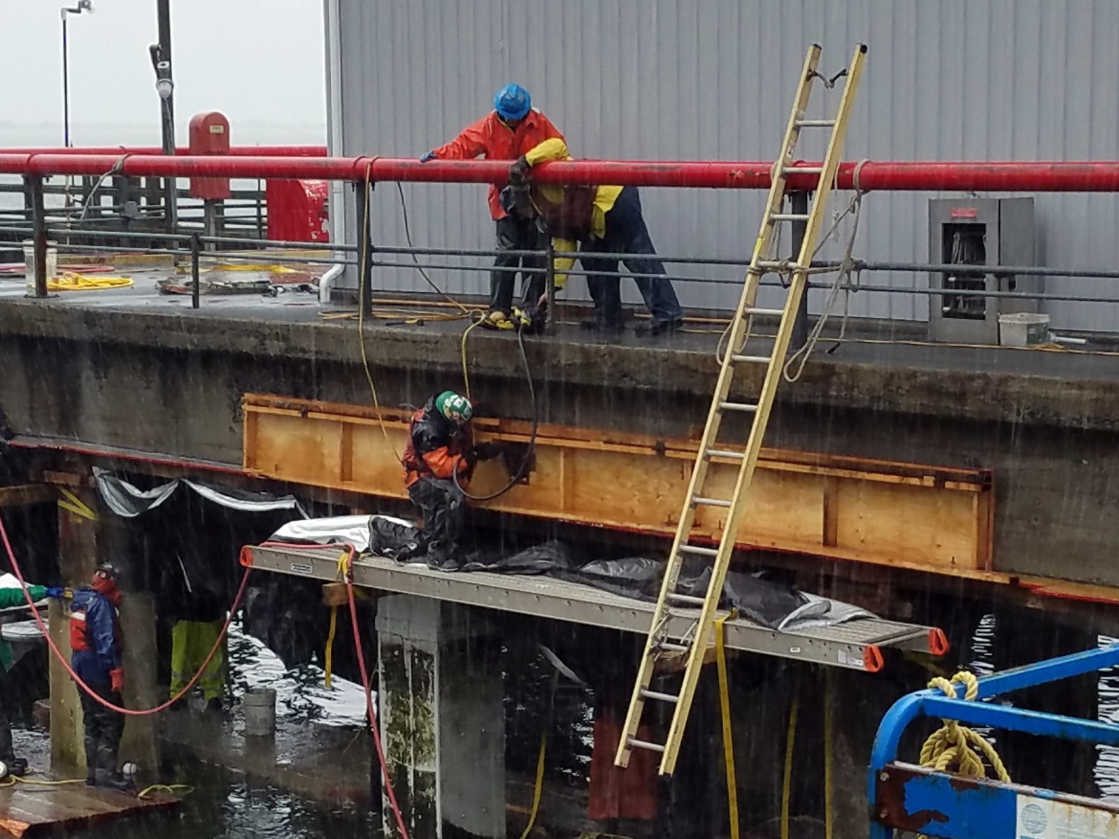 WJE collaborated with Pullman SST, Inc., and the National Grid to perform a condition assessment of the fuel unloading wharf in early 2017. We issued a report of findings and prioritization of repairs, which were to be completed in two phases. In addition, we performed construction period services during the phased repair implementation.