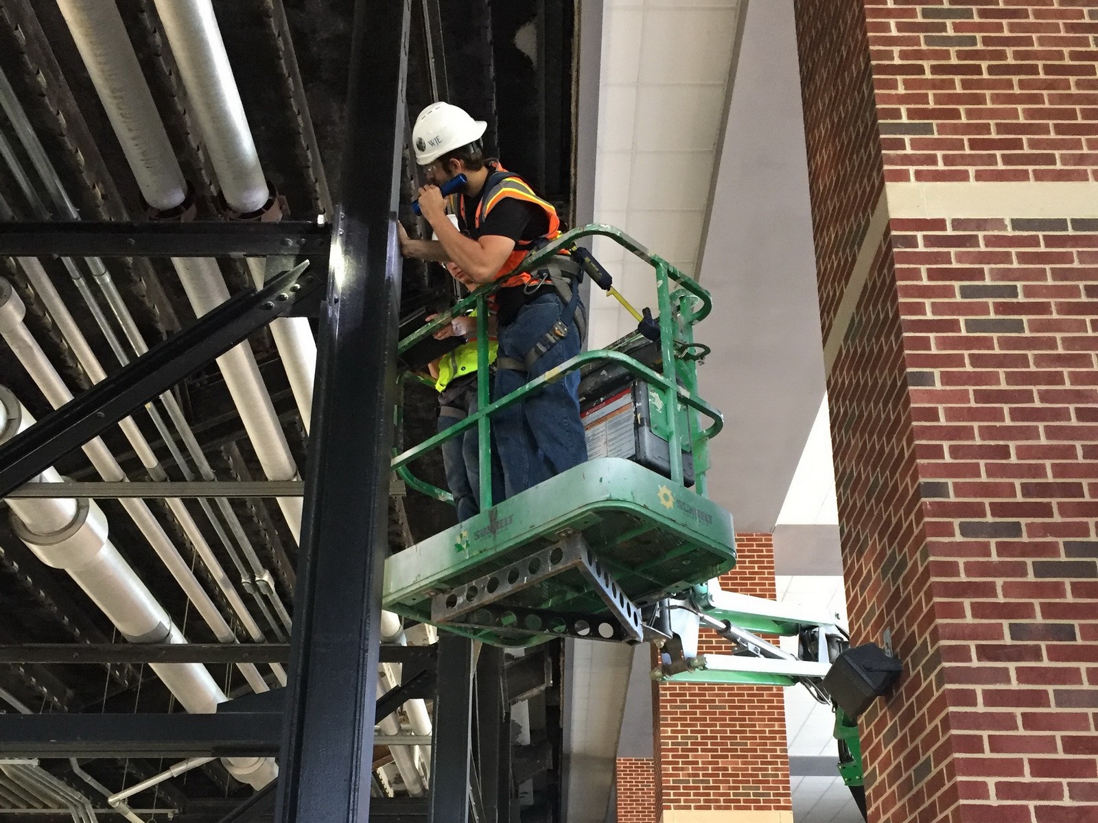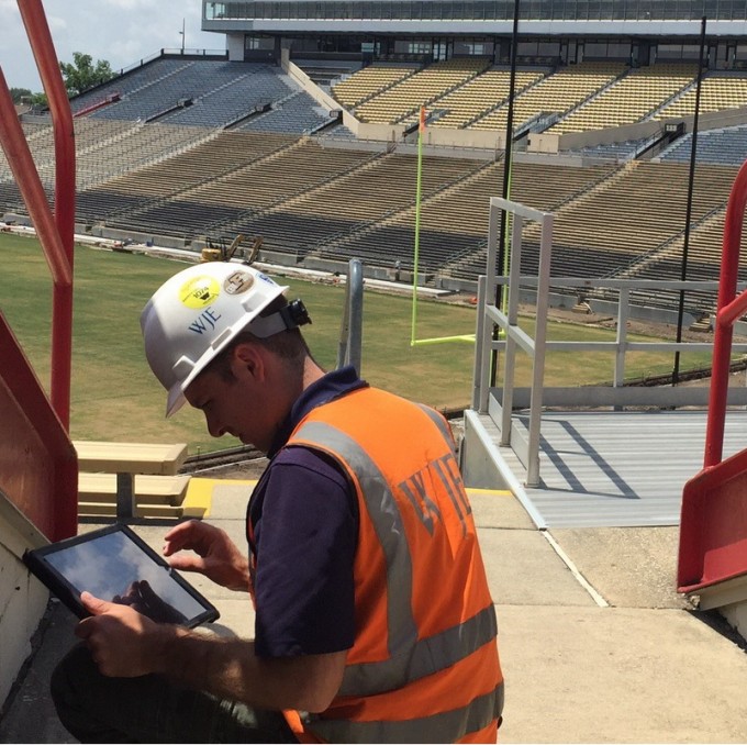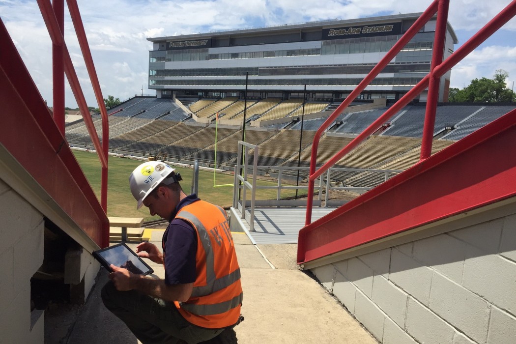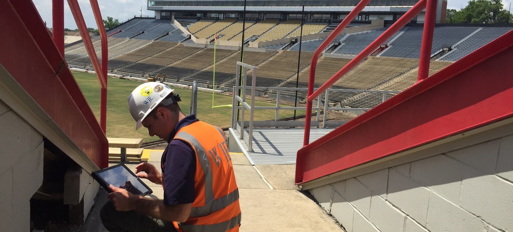 WJE’s evaluation consisted of hands-on assessment of the entire grandstand structure using areal lifts. WJE utilized proprietary tablet software to photographically document conditions on the grandstands and prioritize the severity of observed conditions and distress. Additionally, the coatings on the grandstands were evaluated to determine possible recoating repair options.