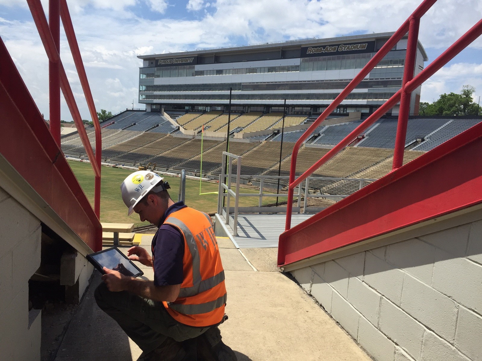 Purdue University requested WJE’s services to perform a condition assessment of the existing steel grandstand framing on the north, east, and west sides of the stadium. The purpose of this study was to evaluate and document the general condition of the existing steel framing; identify the types and extent of visually obvious structural distress; and to develop general remedial options for addressing and/or monitoring identified deficiencies and maintaining the grandstands, with an emphasis on identifying potential long-term structural issues as well as general maintenance costs.
