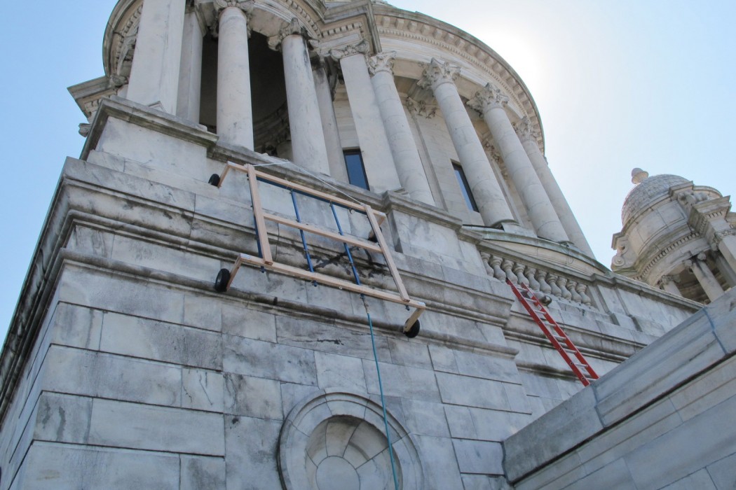 WJE worked with Brewster Thornton Group Architects (BTGA) to diagnose and treat moisture issues within the marble tourelles at the four corners of the dome of the Rhode Island State House. WJE performed a document review, a survey of the interior and exterior, inspection openings, water testing, and testing of select materials. Research and investigations revealed several deficiencies in energy retrofits, cleaning efforts, aged materials, and inappropriate material applications throughout the tourelle construction. Investigative findings were presented and exterior repairs were designed and implemented in association with BTGA.
