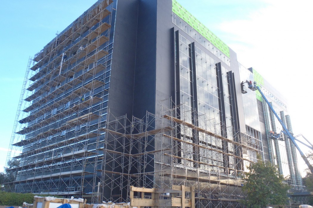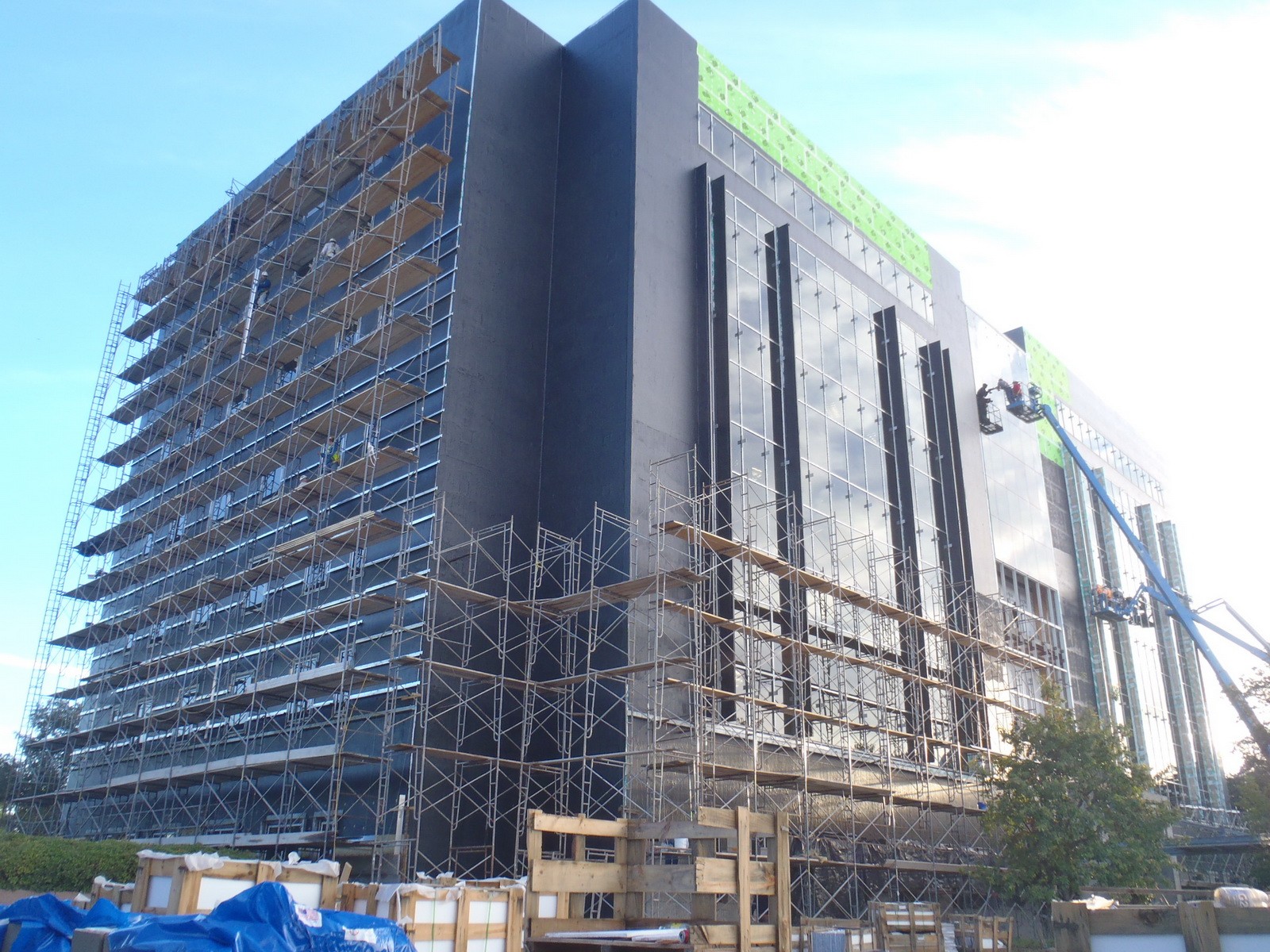 WJE's initial investigation included a visual condition survey and laboratory analysis of core samples taken from the building. Through this assessment, WJE was able to determine that the distress was due to delayed ettringite formation, a type of internal sulfate attack. WJE performed additional laboratory analysis and determined it was highly likely that the distress would continue, to the point that the structural integrity of the panels could be compromised. WJE developed temporary repairs to slow the rate of distress but recommended that the State plan to eventually replace the panels. The State implemented the temporary repairs and then began allocating funds for removal of the panels and replacement of the building envelope. WJE subsequently served as the exterior envelope consultant on the design team for the recladding project.