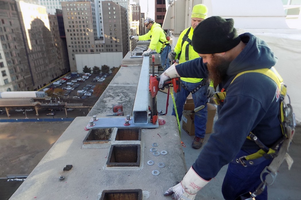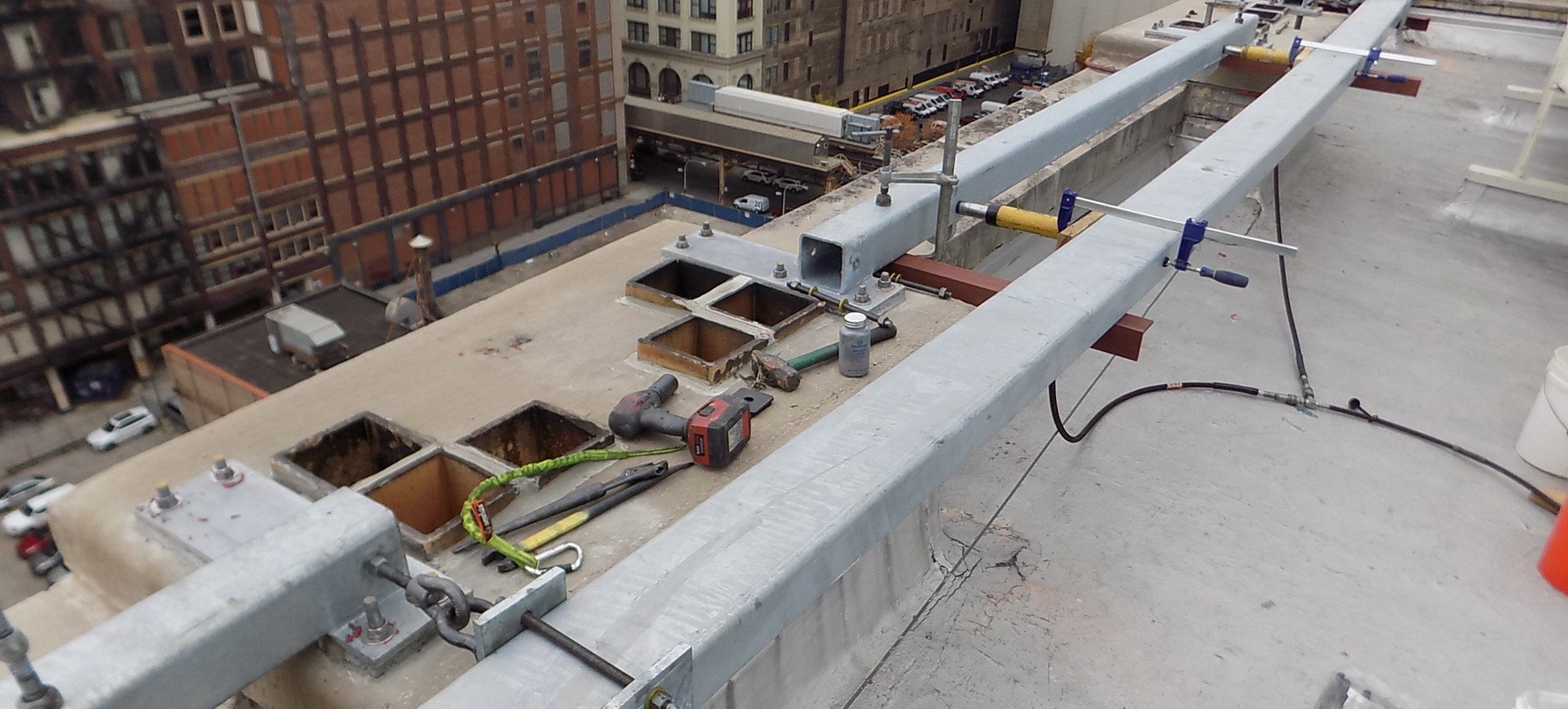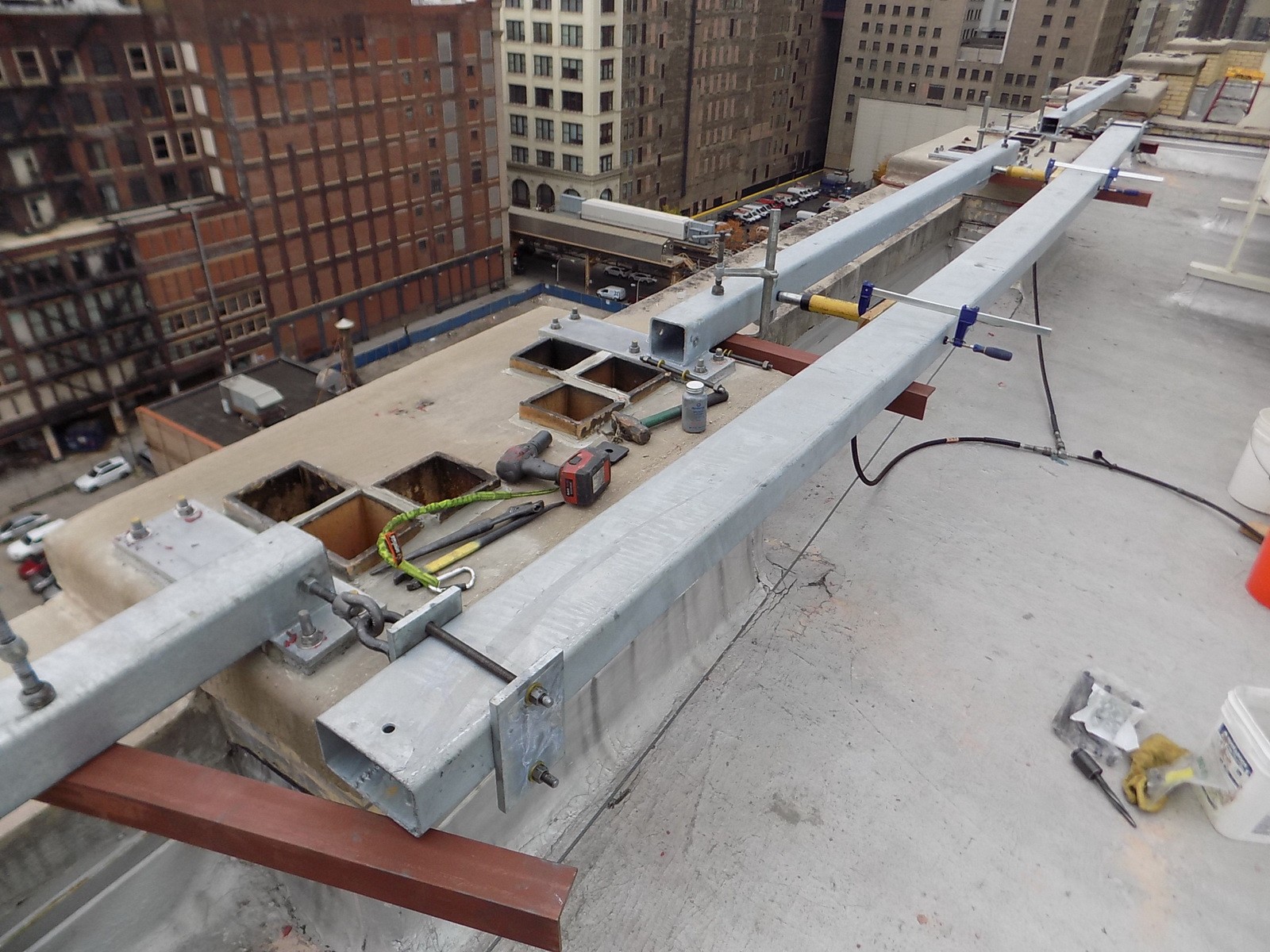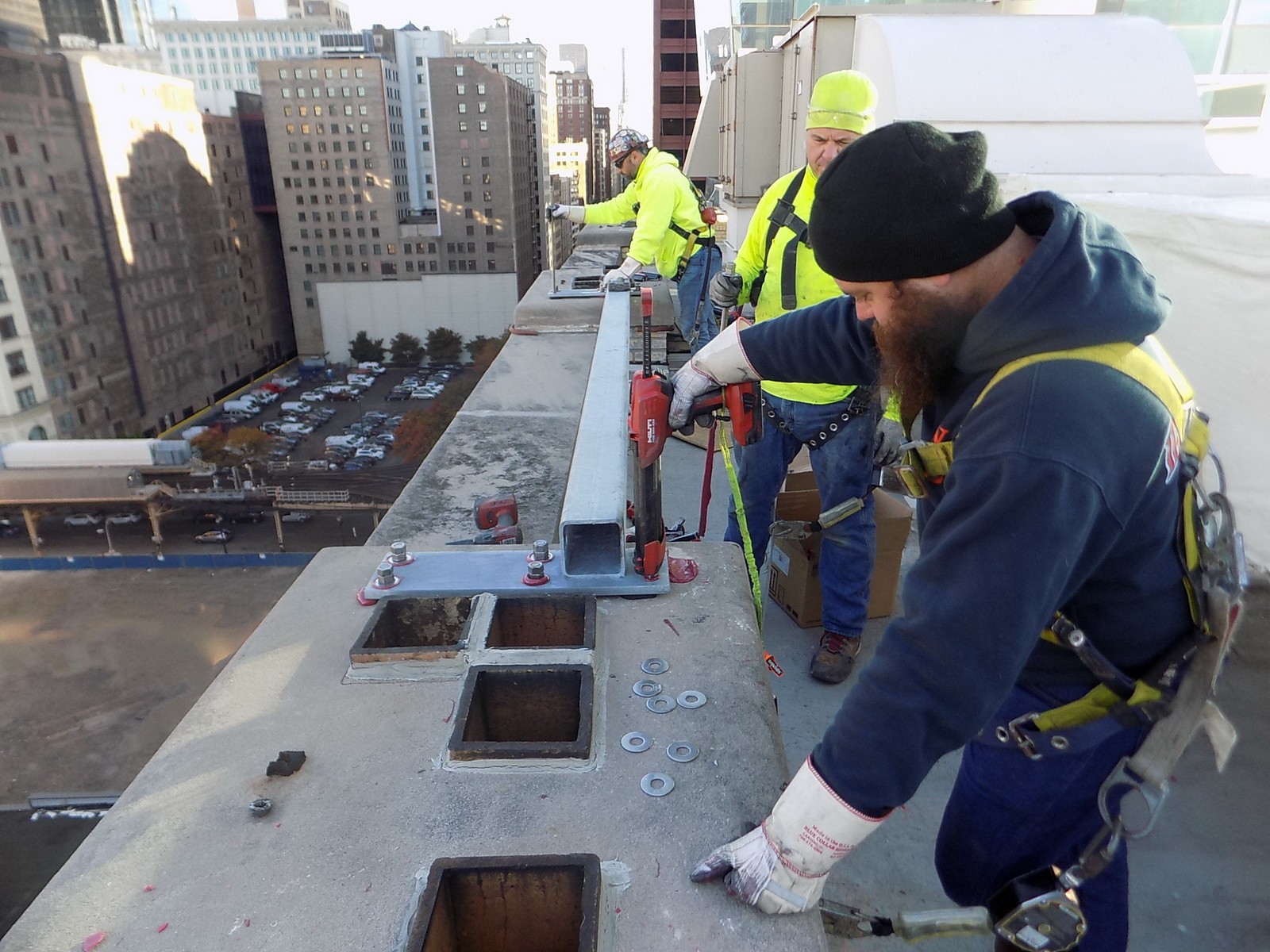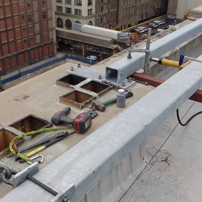 Each anchorage point was loaded in a manner that replicated the minimum design load (i.e., 5,000 pounds) required by OSHA and the Chicago Building Code in potential directions of use. The new equipment sustained the test load in an appropriately elastic manner and was certified for use.