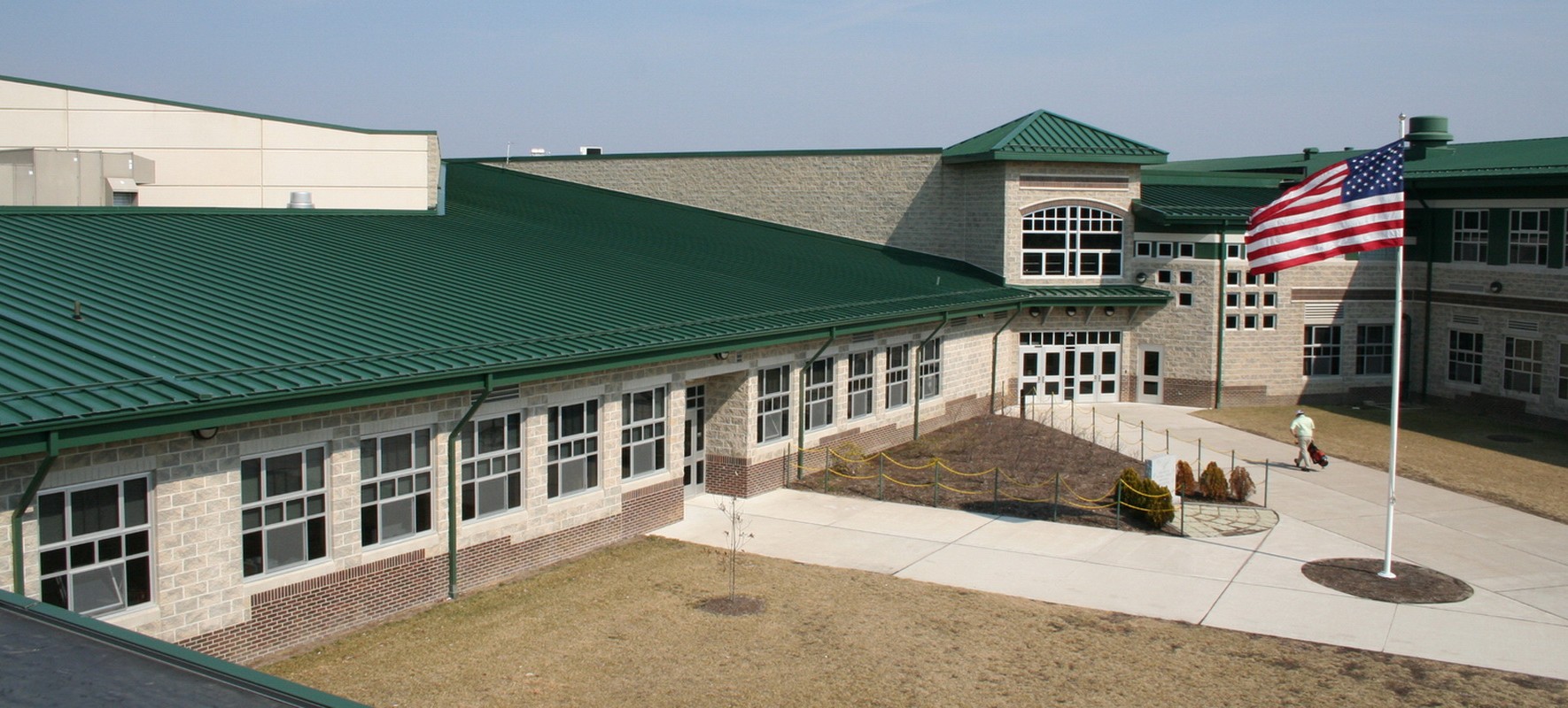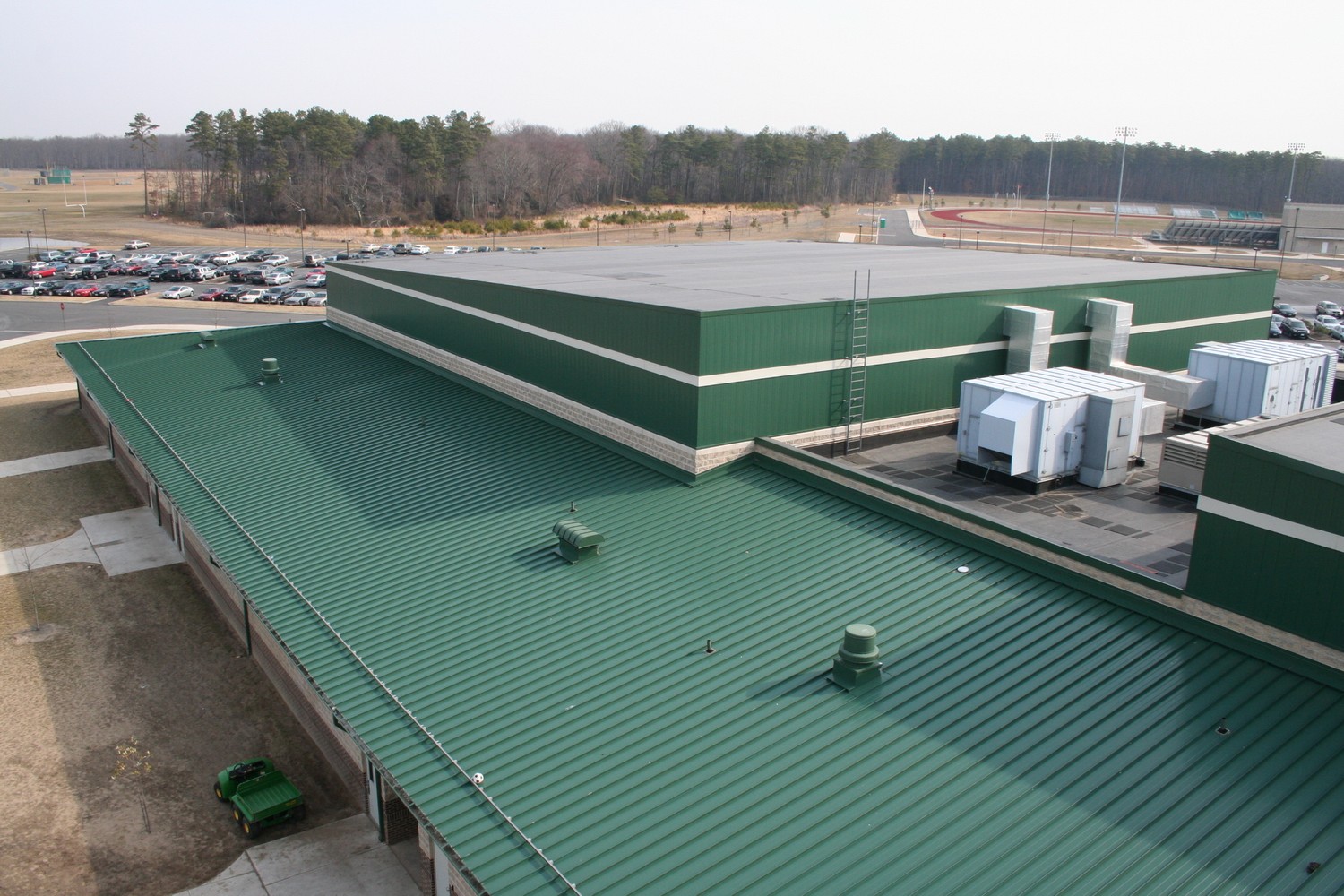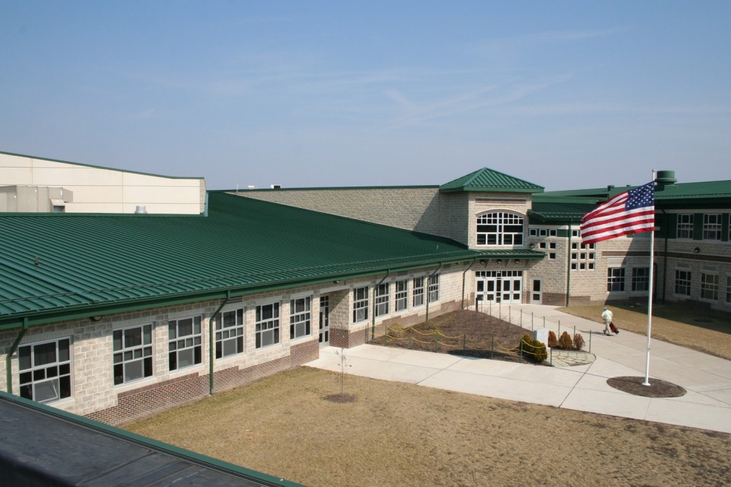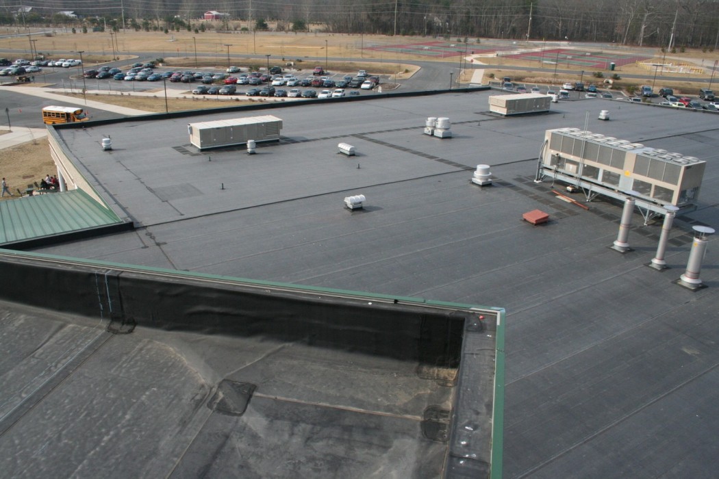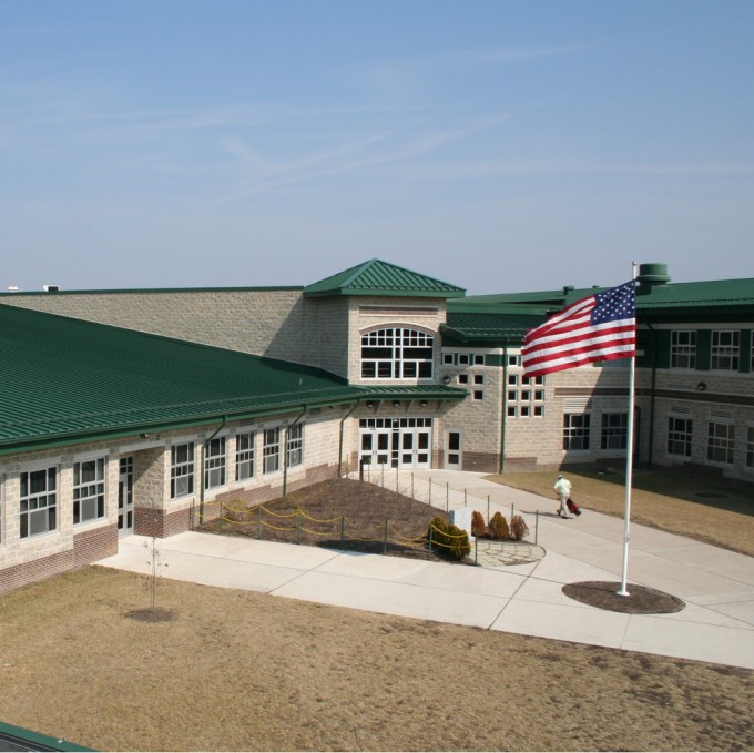 Construction of Seneca High School was completed in 2003. The school's building envelope consists of masonry cavity walls, metal wall panels, approximately 58,000 square feet of steep-slope standing seam sheet metal roofing, and about 108,000 square feet of low-slope single-ply EPDM membrane roofing.