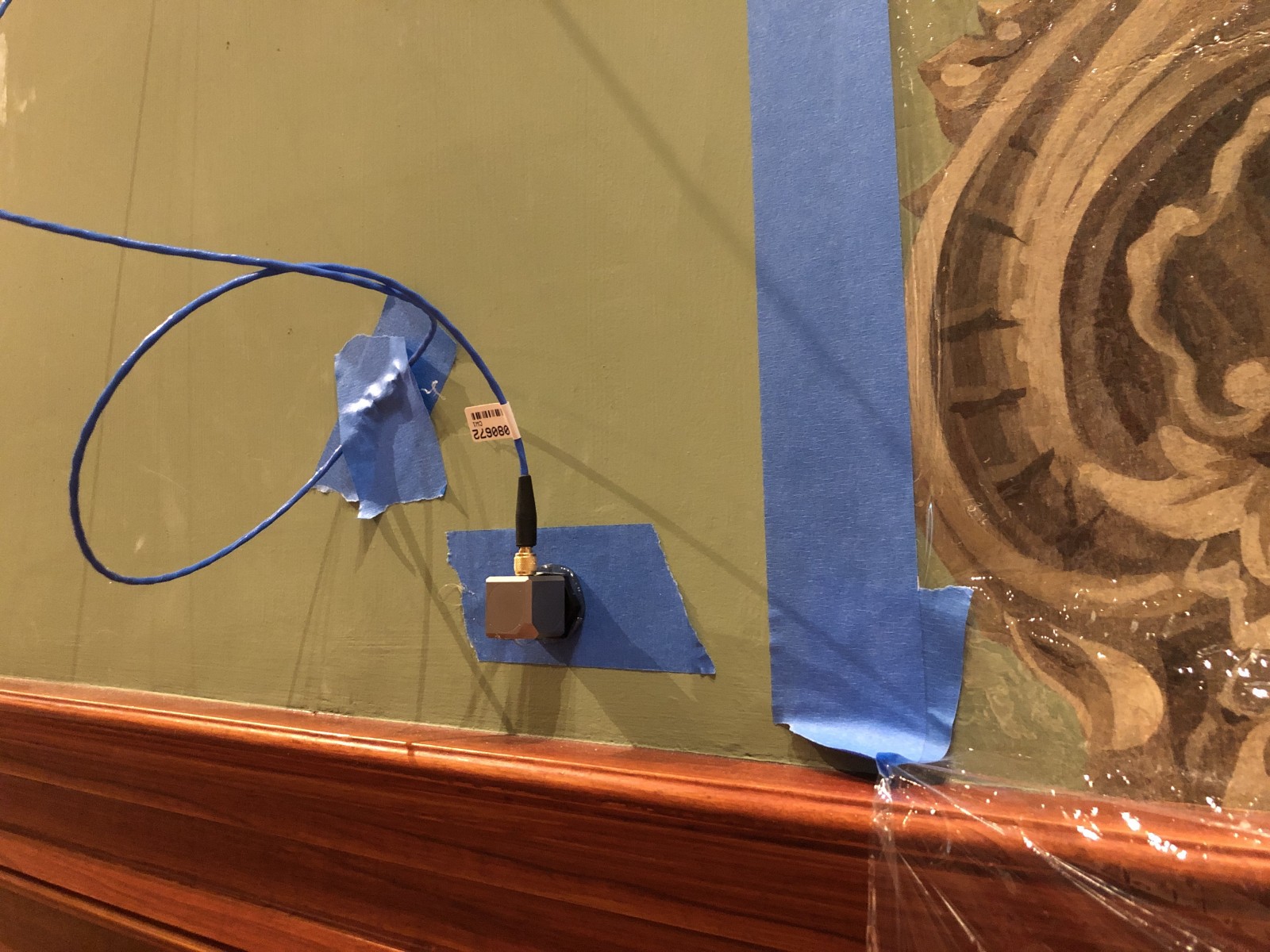 Before construction to the museum building itself, we performed extensive vibration testing in and around the mural gallery to estimate potential vibration levels at the murals. We conducted mock construction activities in the mural gallery, in the attic above the mural gallery, and at exterior walls adjacent to the mural gallery to measure vibrations at the boundaries of the murals. Using that data, we developed a vibration control specification and contractor guidance document. During construction, we monitored vibrations around the murals, as well as strain in the plaster finishes across the murals, using a custom system of accelerometers and strain gages. The system provided immediate notifications of any above-threshold levels throughout the construction.