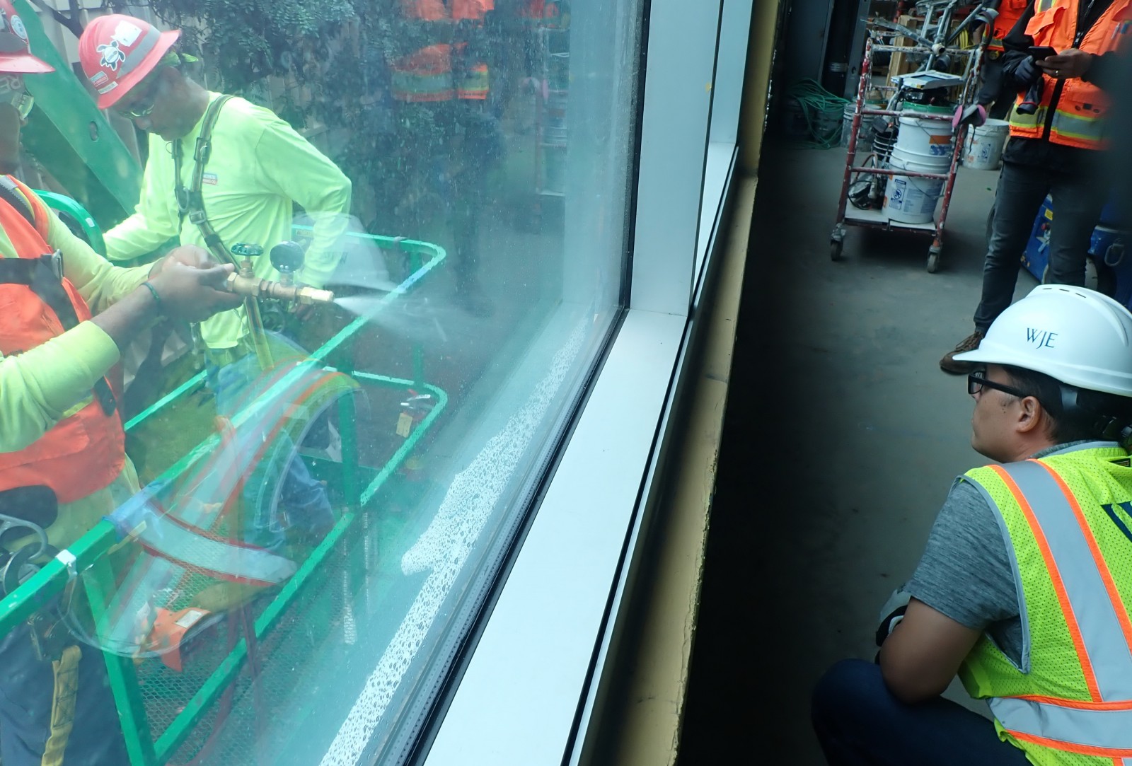 Additionally, we observed and documented ongoing installation of representative areas of the curtain wall, windows, DEFS/EIFS, and roofing during all construction phases, including mockup installations, general construction work, and field air and water infiltration testing at windows and curtain wall systems at all levels and facades.