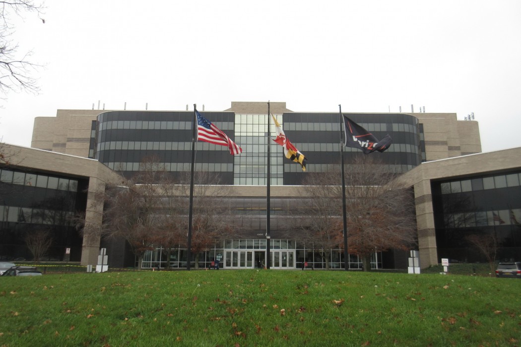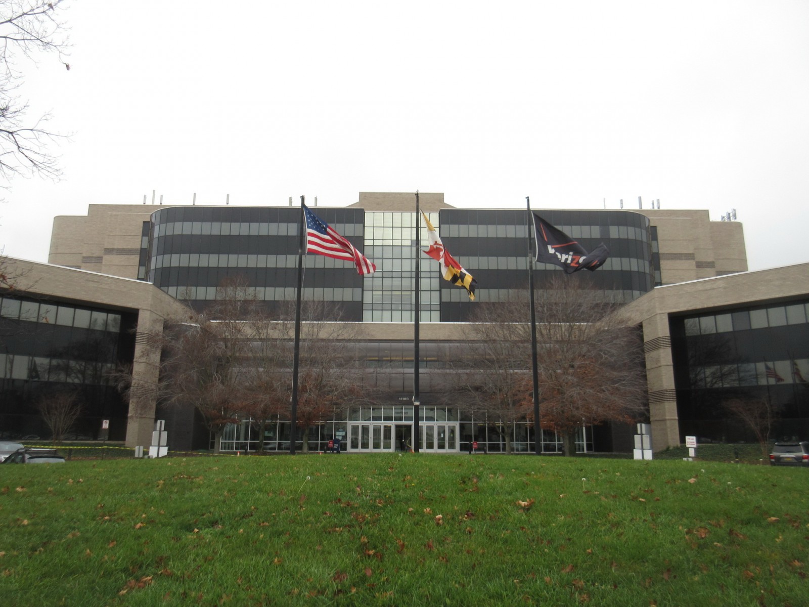 The Verizon Chesapeake Complex office building was designed by Donald N. Coupard Associates and was constructed in the early to mid-1980s. The building is comprised of a central seven-story tower and four three-story wings that extend toward the south and northeast. The facades of the wings are clad with brick masonry and horizontal bands of ribbon storefront windows. The central tower is encased with a curtain wall assembly with alternating bands of vision lites and nonvision spandrel lites. The main lobby includes a curtain wall assembly and a barrel-vaulted skylight.