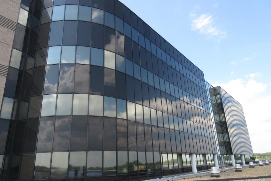 WJE conducted field water penetration testing to identify the source of uncontrolled rainwater penetration into the interior spaces, and bulk water was observed collection within the glazing pocket. We recommended glazing gasket replacement to significantly limit water access to the glazing pocket and prevent debris from clogging drainage channels and weeps. We developed repair documents for the central tower, which included exterior gasket replacement, interior window film replacement, and exterior perimeter sealant replacement. After restoration work at the central tower was initiated, we developed repair documents for the lower four wings of the building.