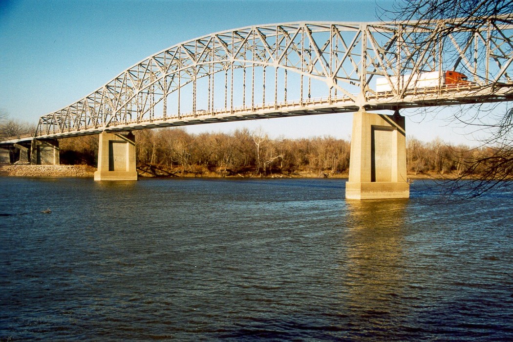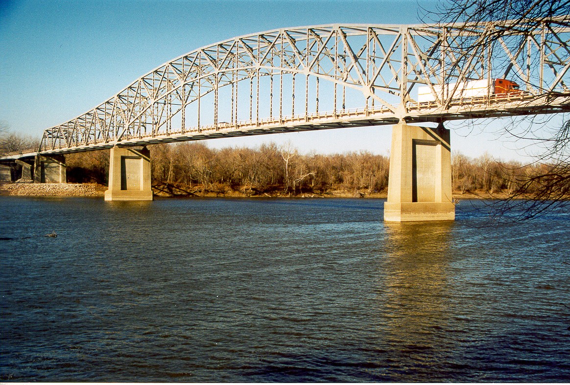 Built in 1956, the one-mile-long Wabash Memorial Bridge is a two-lane structure crossing the Wabash River between Indiana and Illinois. Its main structure is a three-span, tied arch through-truss bridge flanked by six plate girder approach spans on each side. The remaining structure is a multiple-span, conventional steel bridge over a floodplain. This structure has thirty-six spans of wide flange girder superstructure set on hammerhead piers, which constitute over one-half the bridge length.
