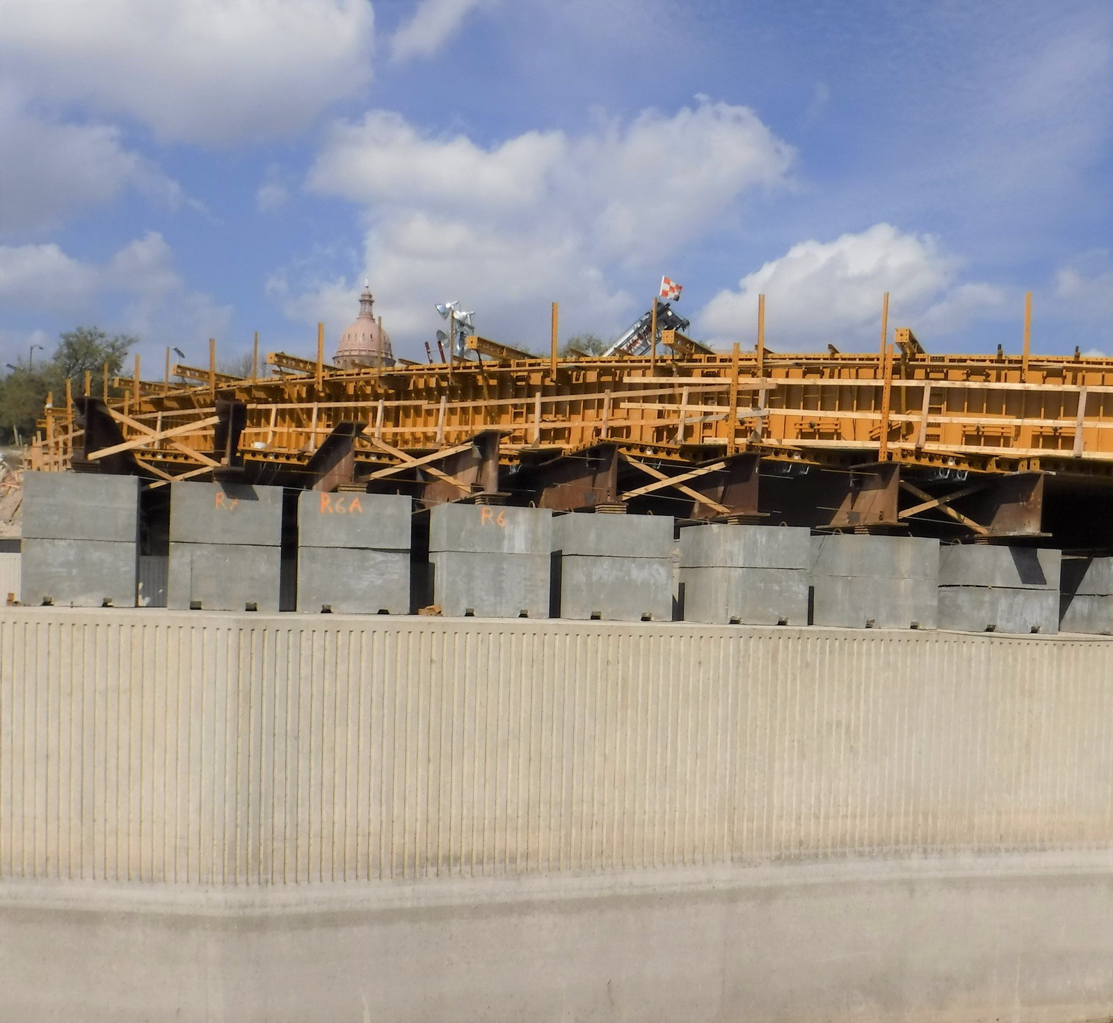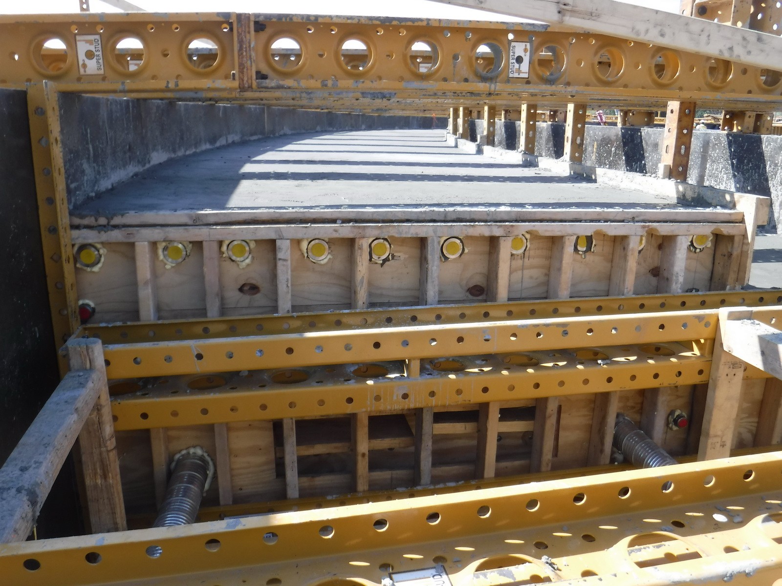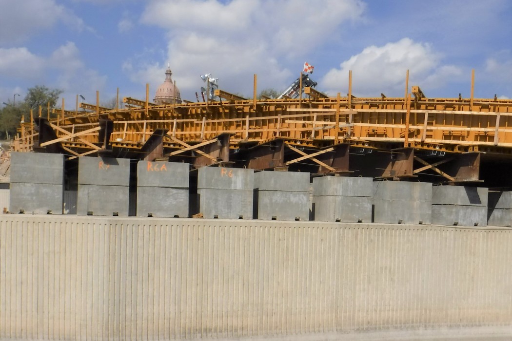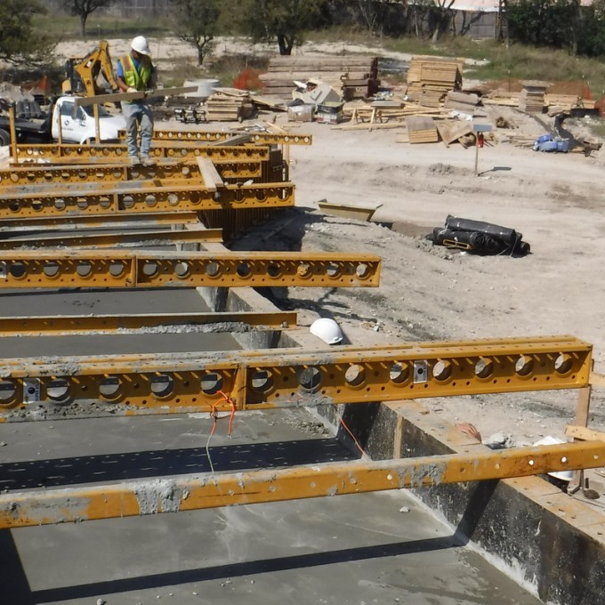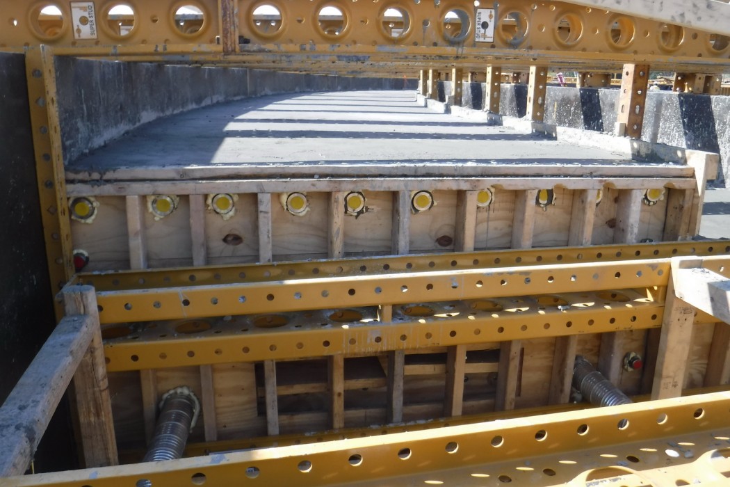 WJE modeled the temperature development due to the heat of cement hydration using thermal analysis software, which predicted the maximum core temperature and temperature differential between the concrete core and concrete surface. Based on the results from the analysis, a mass concrete thermal control plan was prepared to mitigate the risk of thermal cracking. The plan included guidelines for precooling methods, concrete placement temperature, insulation application, and installation of temperature sensors. The mass concrete thermal control plan provided by WJE was able to successfully limit the maximum core temperature and temperature differentials of the post-tensioned mass concrete cantilevered beam.