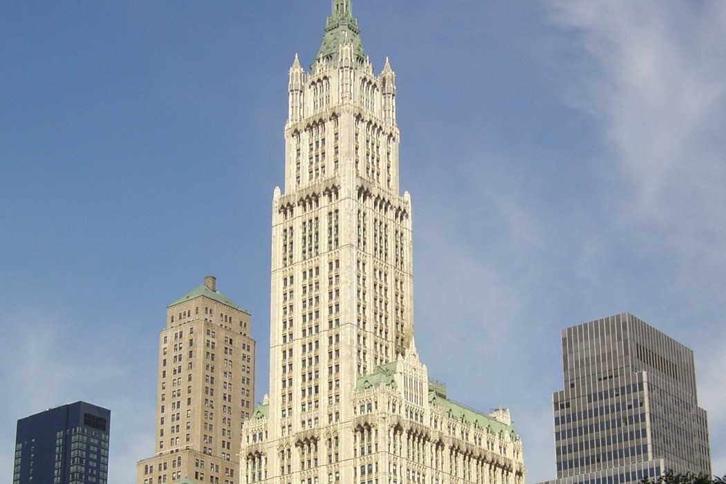 The Woolworth Building is a 58-story office tower designed by Cass Gilbert and completed in 1913. It was the tallest building in the world until 1931. The structure is considered a historically significant landmark and is listed in the National Register of Historic Places.